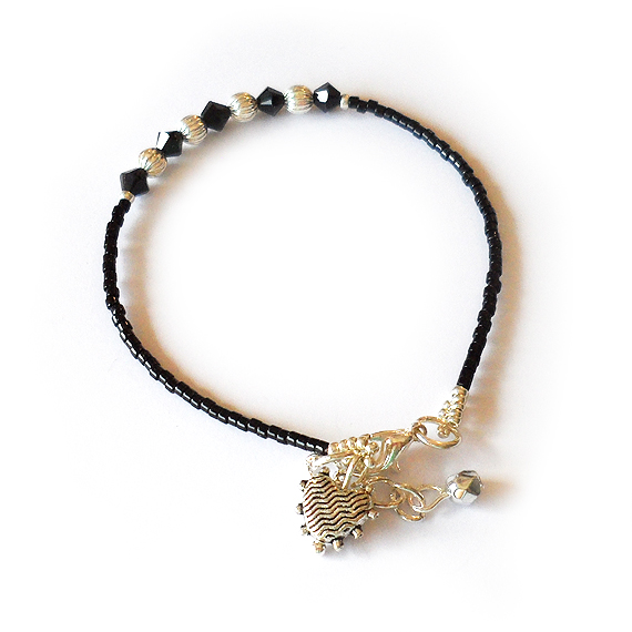 Elegant and delicate bracelet handmade with sparkly swarovski crystals in black color , silver metal beads and my favourite seed glass beads in black color.