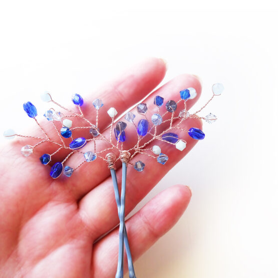 A set of two gorgeous hairpins! Perfect to add a touch of something blue in your look