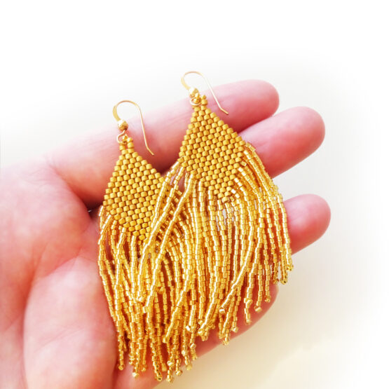 Lovely Boho Earrings created in shiny golden and matte 24kt gold dipped beads, all set in 14kt gold dipped earrings.