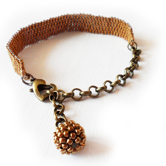Created with more than 400 little glass beads laboriously beadwoven in a lovely bronze color. Set in a long bronze chain perfect for All sizes! The long chain allows for many sizes and gives a fun touch! Wear it to work to brighten your days or layer it up for a bohemian style!