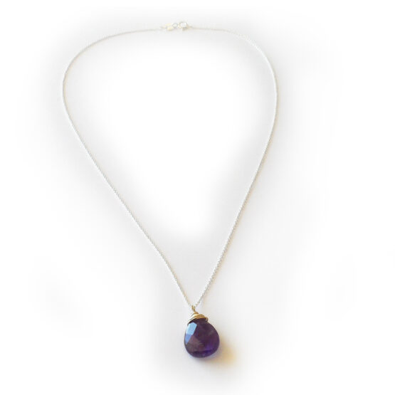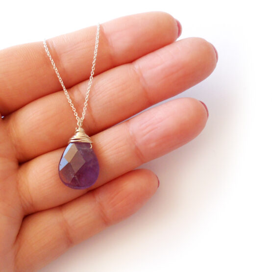 Enjoy everyday with the gorgeous Carolina necklace created with an amethyst gemstone faceted drop hand wrapped with sterling silver wire and set in a lovely sterling silver chain !