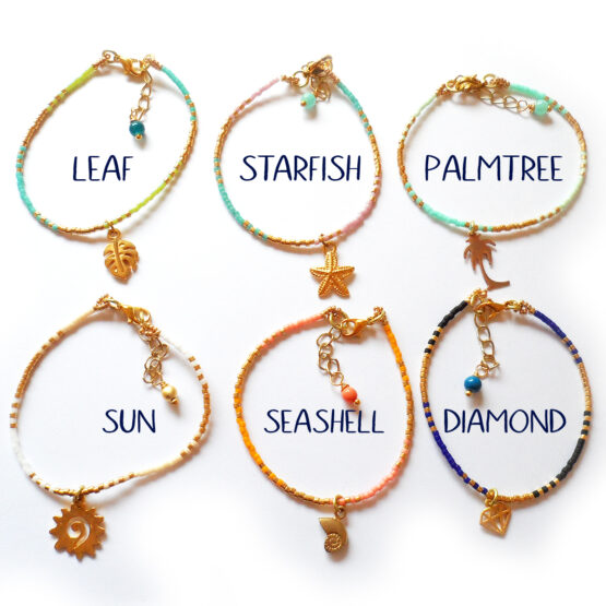 | DREAMY BEACH BRACELET | Diamond, Leaf, Palmtree, Seashell, Starfish, Sun |
