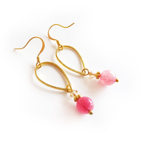 Lovely metal drop Earrings created with gemstone agate beads and swarosvki crystals, all set in gold plated hoops.