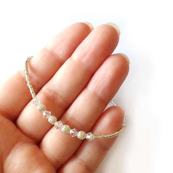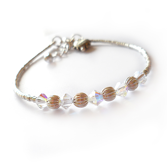 Elegant and delicate Heaven bracelet handmade with sparkly swarovski crystals in crystal ab colors , silver metal beads and my favourite seed glass beads in silver color.