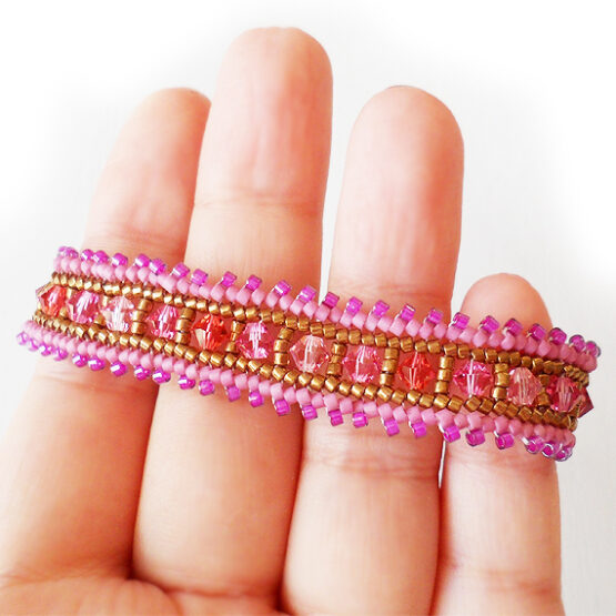Classic and elegant houndstooth bracelet handmade with best quality glass beads in pink , purple , lime green and white colors ! An exquisite jewel of more than a 1000 beads (8 hours of work ) and an easy to use silver plated clasp.