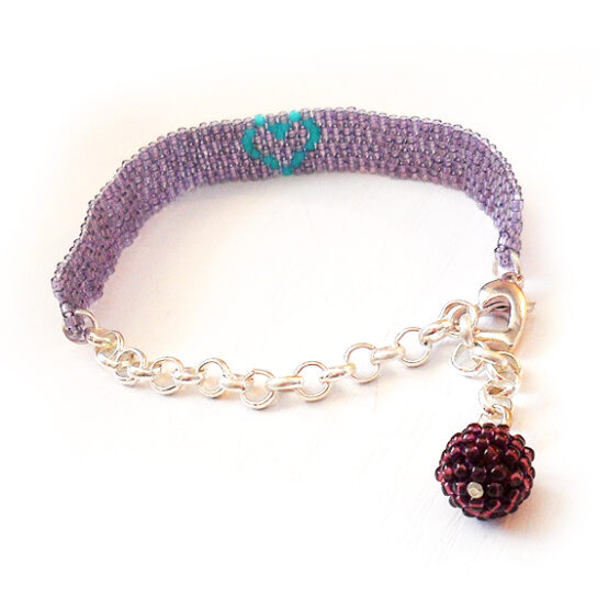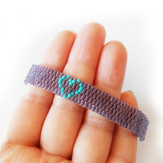 Created with more than 400 little glass beads laboriously beadwoven with a trendy heart design in shimmering purple lilac and turquoise blue colors. Set in a long silver plated chain perfect for All sizes! The long chain allows for many sizes and gives a fun touch! Wear it to work to brighten your days or layer it up for a bohemian style!