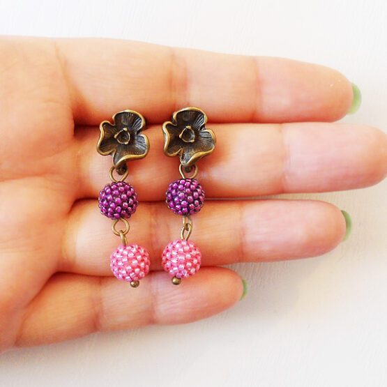 Lilac Heart Earrings created with shiny glass hearts, all set in silver plated hoops.