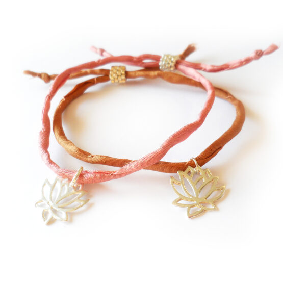 The believe bracelet it’s created with a lovely lotus flower charm in sterling silver that will dance in your wrist and make you remember your word! The silk cord is very comfortable and you can choose between pink , purple and brown colors!