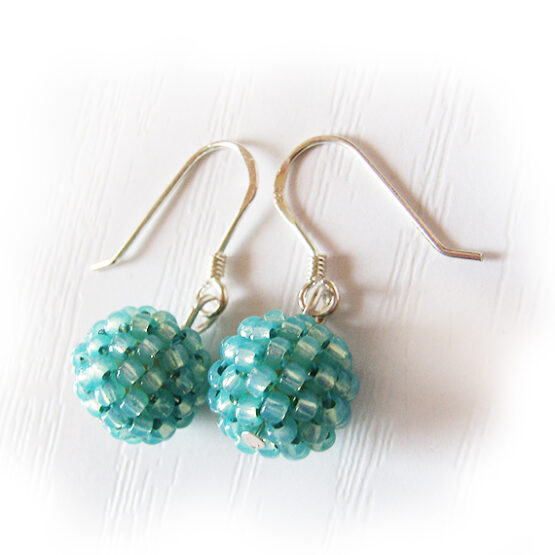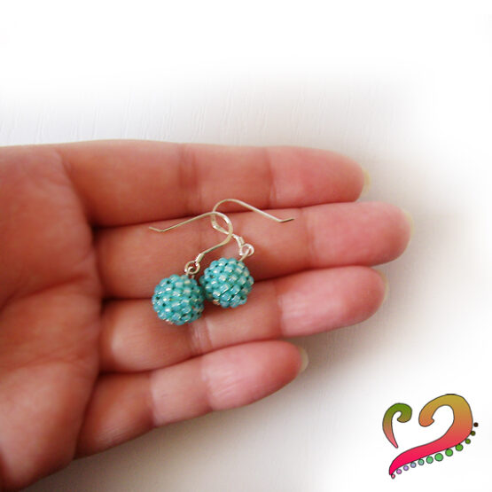 Casual , delicate and original earrings created with two of my amazing little jewels berry balls , handmade with the best quality small glass beads in shiny mint blue color , adding them one by one ! All set in sterling silver hoops.
