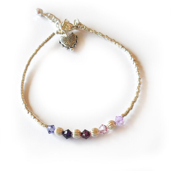 Elegant and delicate Mystica bracelet handmade with sparkly swarovski crystals in purple colors , silver metal beads and my favourite seed glass beads in silver color.