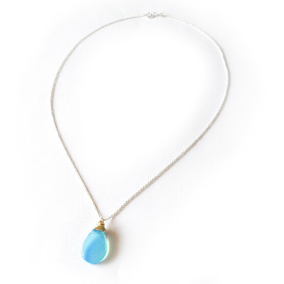 Look beautiful and elegant with this opal blue glass drop necklace hand wrapped with sterling silver wire and set in a lovely small sterling silver chain ! Enjoy this ocean drop jewel and wear it always with You!