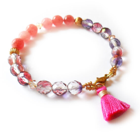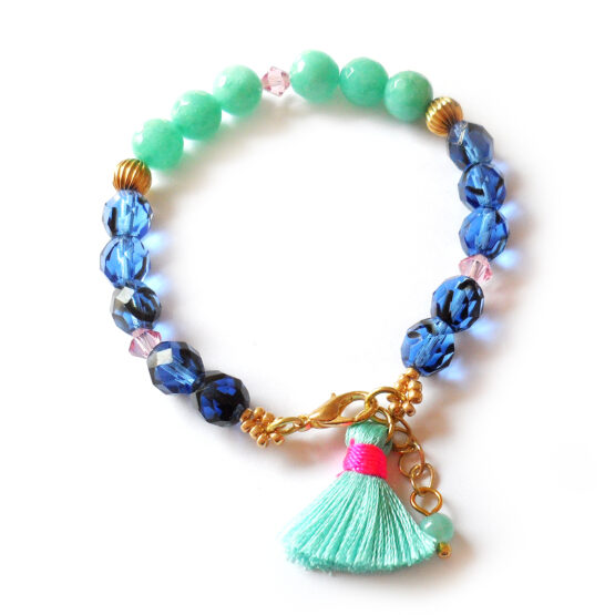 Amazing Paradise Bracelet handmade with gorgeous faceted agate gemstone beads dyed in deep turquoise , ocean blue and pink colors! Each bracelet mixes with swarovski crystals and bohemian beads. Perfect to wear with your favourite outfits!