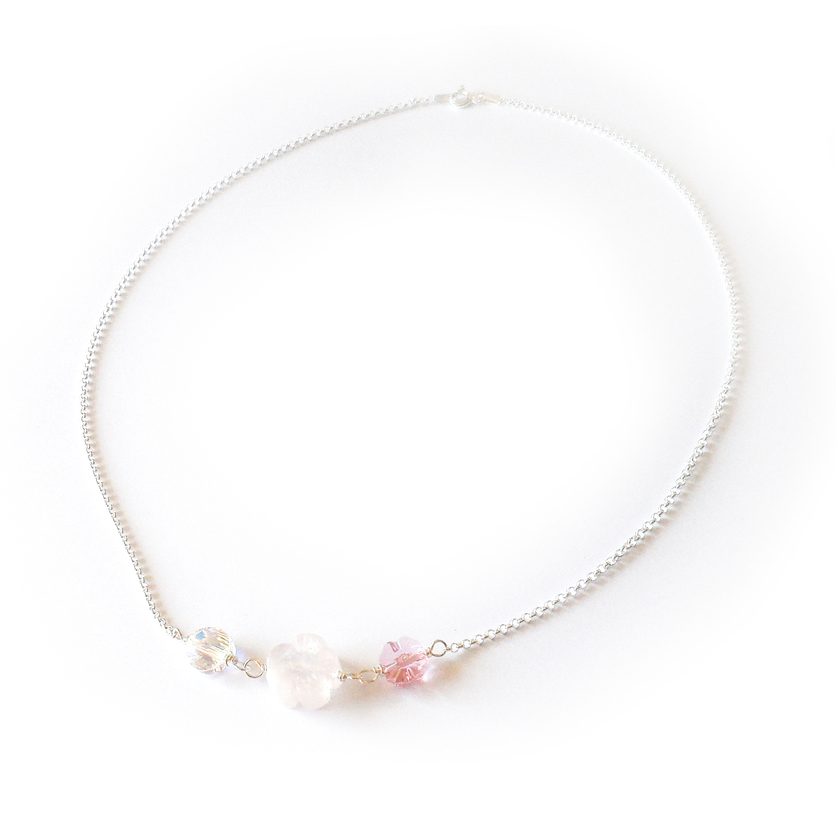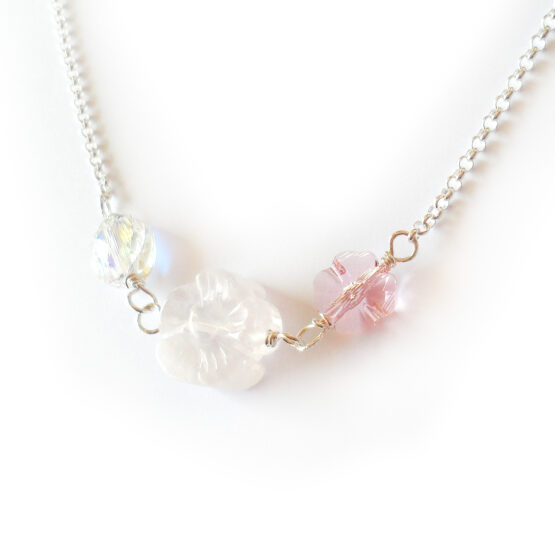 Enjoy every moment with this elegant and femenine Penelope necklace created with oval swarovski beads and a gorgeous pink quartz gemstone flower cut bead, all set in a sterling silver chain! This necklace is a new version of my dainty necklaces with bigger beads and chain that stands out more without being too much!