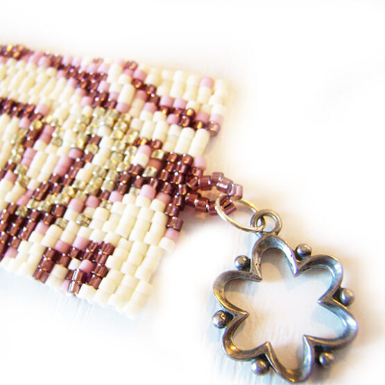 Elegant , Comfortable and Sexy wide bracelet made with best quality glass beads in purple , pink and white colors ! An exquisite jewel of more than 2000 beads and an easy to use sterling silver clasp.