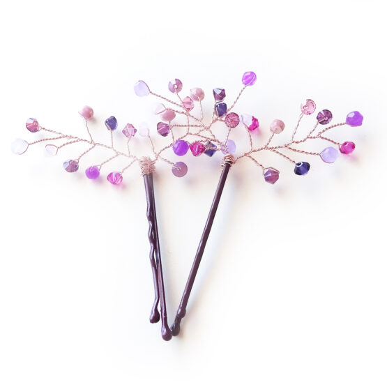 Are you looking for a small jewel for your hairstyle? These wings hairpins are created with swarovski crystals and agate gestone beads in purple shades.