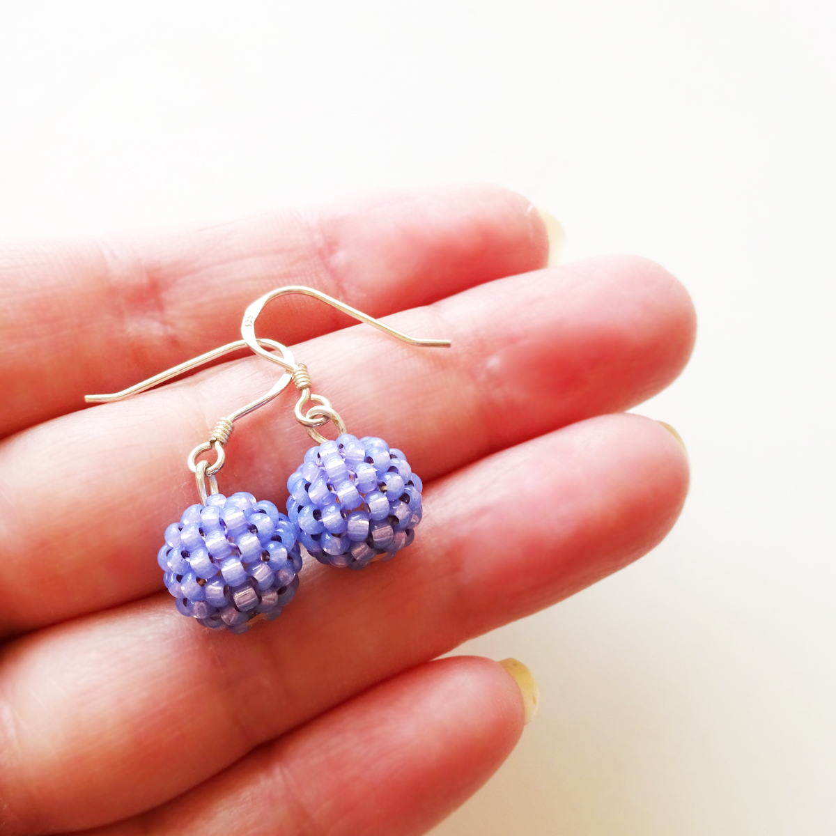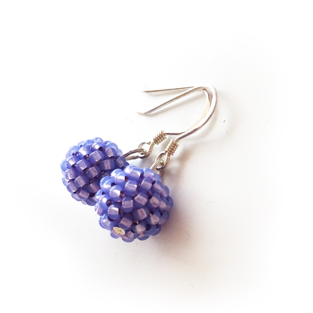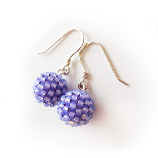 Casual , delicate and original earrings created with two of my amazing little jewels berry balls handmade with the best quality small glass beads in tanzanite purple color , adding them one by one ! All set in sterling silver hoops.