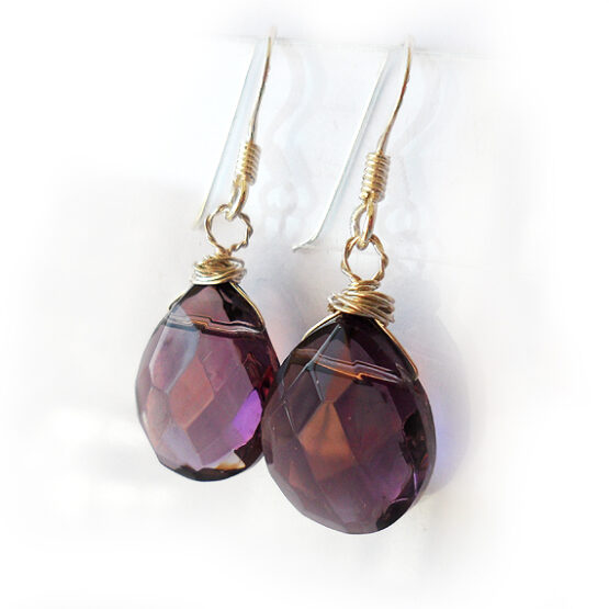 Elegant and sexy teardrop earrings created with gorgeous crystals in purple color , wrapped in sterling silver wire and set in sterling silver hoops.