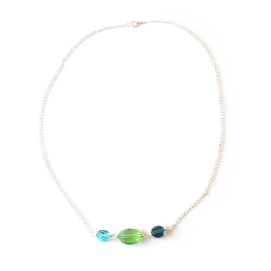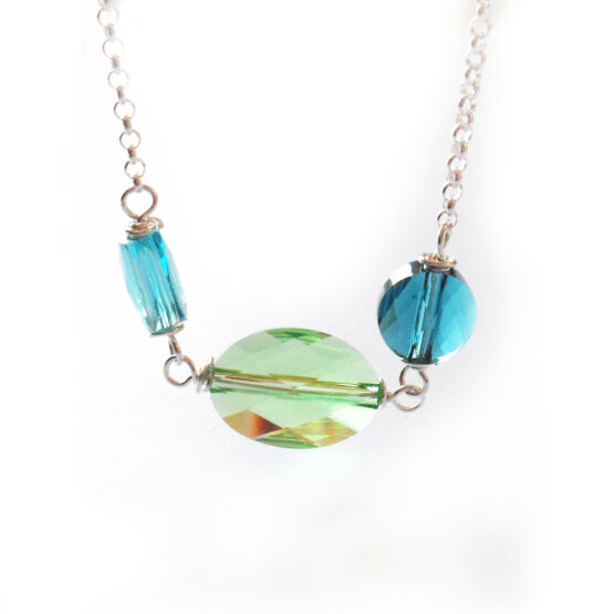 Enjoy every moment with this elegant and femenine Sara necklace created with oval blue and green swarovski beads , all set in a sterling silver chain! This necklace is a new version of my dainty necklaces with bigger beads and chain that stands out more without being too much!