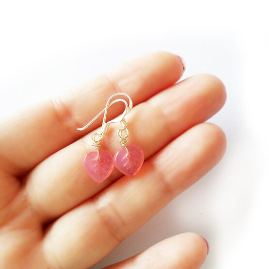 Celebrate nature and spring with these small pink leaf earrings created with two gorgeous leaf beads in opal pink color , wrapped in sterling silver wire and set in sterling silver hoops.