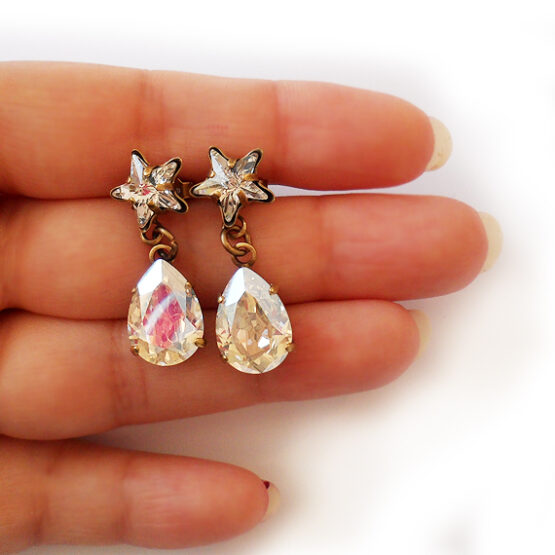 Shine everyday with this new Star Teardrops design ! Lovely rhinestone faceted earrings created with gorgeous shimmering swarovski crystals , set in bronze studs earrings.