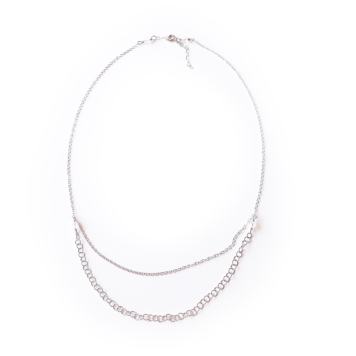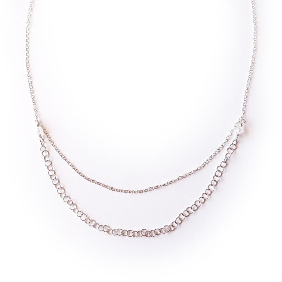 Lovely double chain necklace all made in sterling silver and swarovski crystal beads! Perfect to mix with other necklaces and easy to layer to create more elegant and chic outfits!
