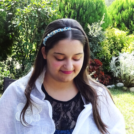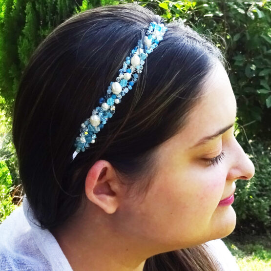 Amazing bridal headband created with swarovski crystals and glass beads in blue shades and freshwater pearls