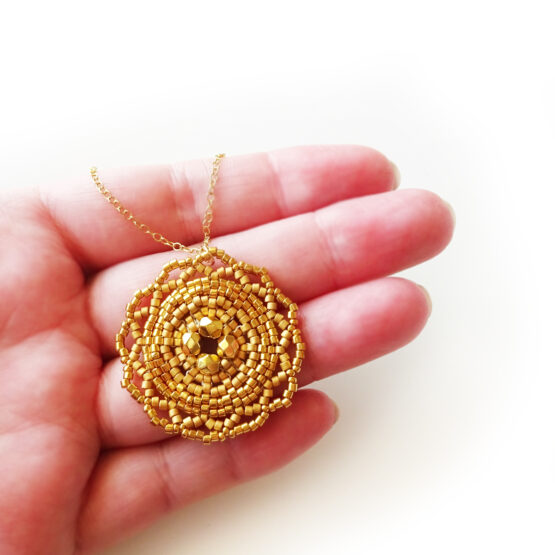 Beautiful Venus necklace created with a handmade charm made with 24kt gold dipped crystal beads all sewed together , all set in a sterling silver dipped in 24kt gold chain!