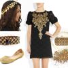 Alice Olivia purple cocktail dress, €120 / Viktor & Rolf open-toe pumps, €295 / MIA pointed toe shoes, €26 / Tory Burch credit card holder wallet, €185 / Purple swarovski crystal earrings, €18 / Kate Spade bracelet bangle, €58 / Alexander McQueen pink shawl, €220 / Urban decay eye makeup, €14 / Diesel eau de perfume, €25 / Hersheson Fishtail Plait, €85