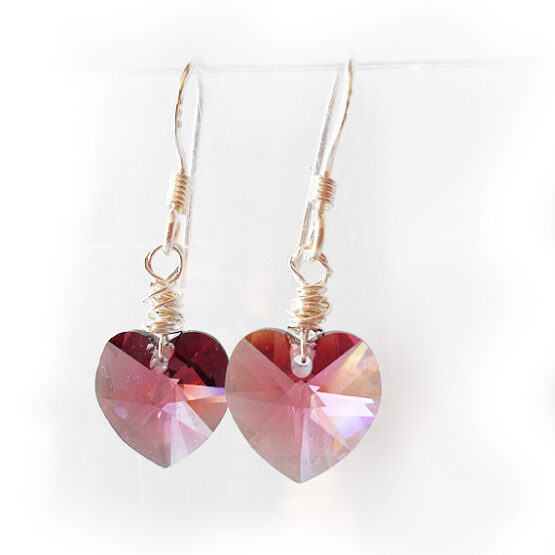 Pendientes Corazón Swarovski Rosa Vintage Plata de Ley