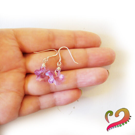 Pendientes Flor Swarovski Rosa Plata de Ley