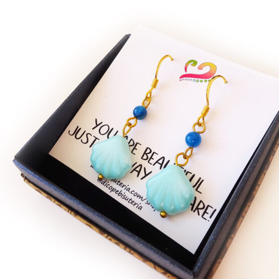 Pendientes de Concha de Cristal Turquesa