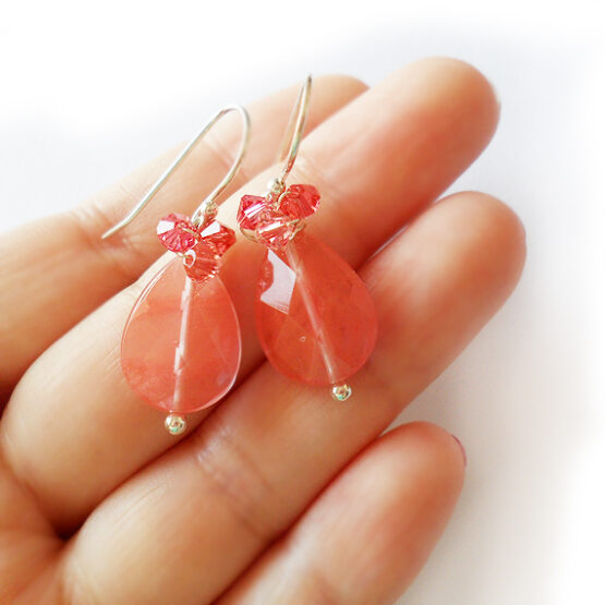 Pendientes con Gota de Cuarzo Cerezo