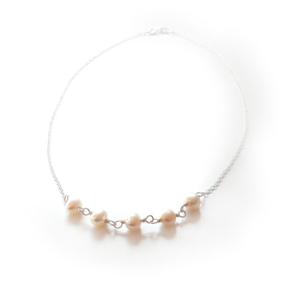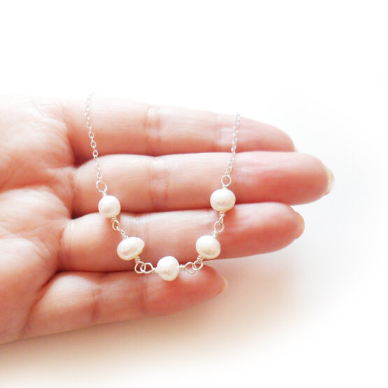 Elegante collar Blanca creado con unas hermosas perlas de rio naturales y montadas en un collar de plata de ley! Perfecto para dar un toque romántico y elegante a tu conjutos!