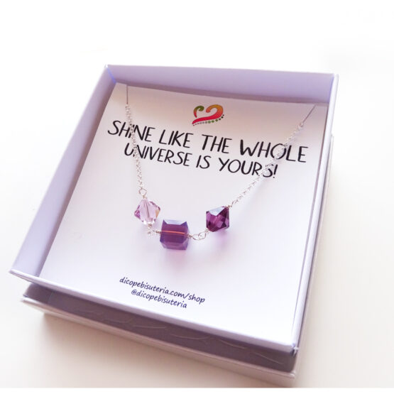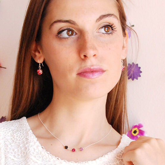 Elegante y minimalista collar Briana creado con tres cristales de swarovski en tonos naranja , fucsia y rosado, todo montado en plata de ley! Perfecto para dar un toque de color a tus looks de trabajo!