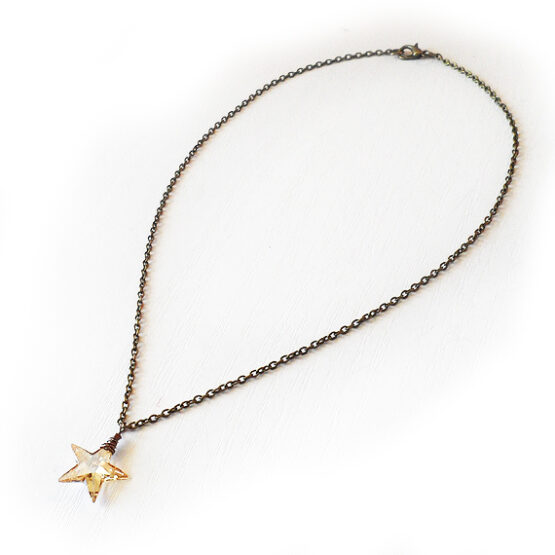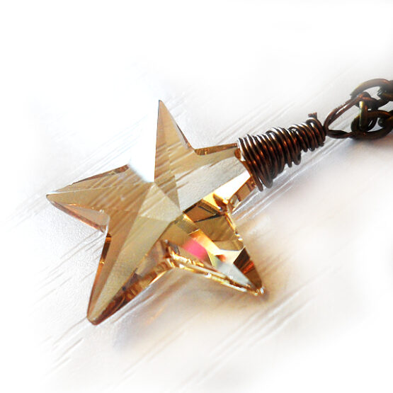 Hermoso collar creado con un colgante de estrella de cristal de swarovski en dorado, todo montado en bronze! Ideal para crear un look minimalista y romántico!