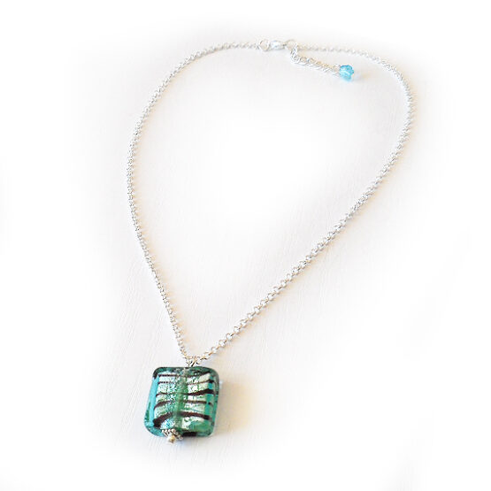 Elegante y Original collar creado con una preciosa cuenta de murano en color verde agua con rayas en tono morado oscuro! Estas maravillosas cuentas que me traje de mi ultimo viaje a italia son ideales para dar un toque de color a tus looks favoritos!