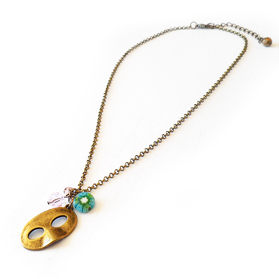 Original collar antifaz de teatro creado un charm en bronze y abalorios de cristal , Millefiori y un cristal de swarovski en rosa clarito ! Perfecto para llevar con tus looks de cada día!