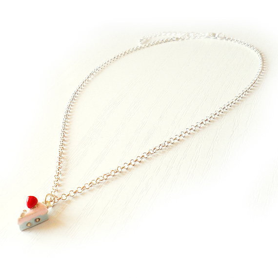Precioso collar de pastel creado con un charm metálico esmaltado y strass . ¿ A quien no le apetece un trozo de tarta ? Llevalo siempre contigo para endulzar tu día !