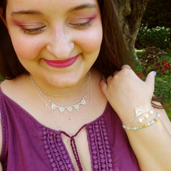 Linda gargantilla creada con una cadenita de plata de ley y pequeñas bolitas de plata. Ideal para combinar con otros collares mas largos o con collares con colgantitos ;)