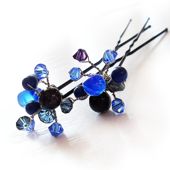 Buscas un pequeño detalle para adornar tu pelo ? Estas preciosas horquillas de pelo (para moño) estan creadas con de auténtico cristal de swarovski y cristal de bohemia en tonos azules.