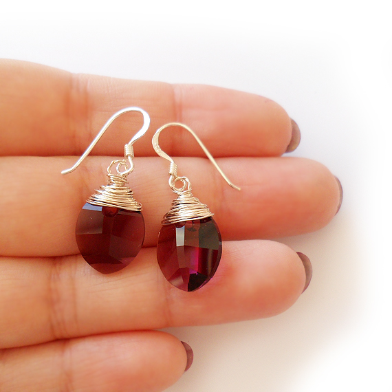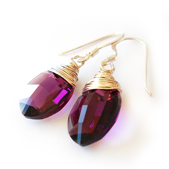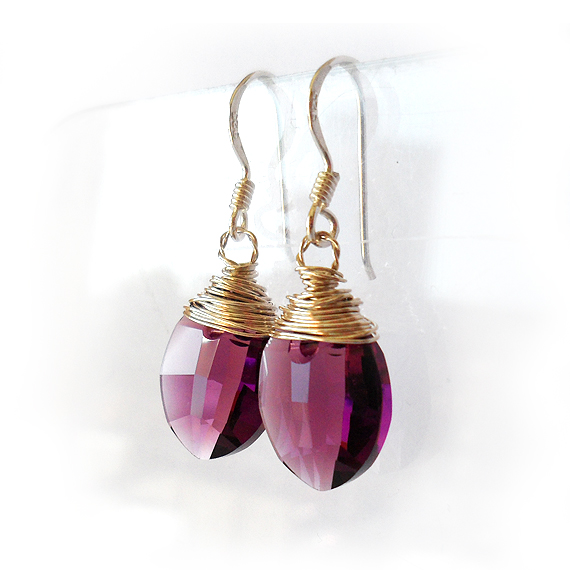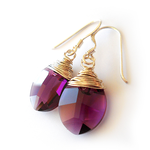 Elegantes pendientes creados con hojas facetadas de cristal de Swarovski en tono amatista y montados en pendientes de plata de ley . Luce-los con tu ropa favorita!