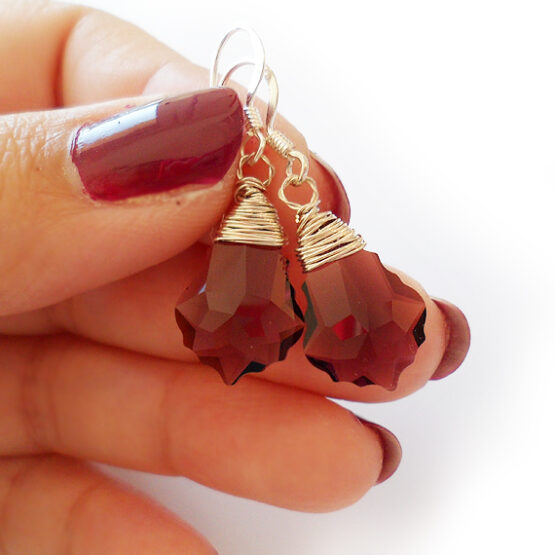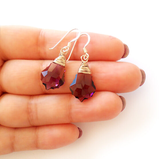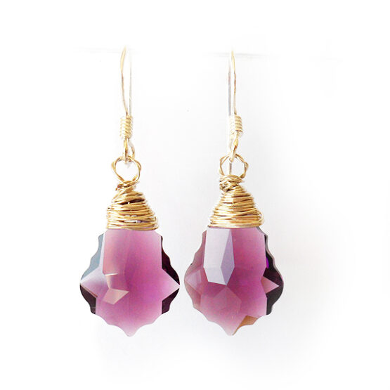 Elegantes pendientes creados con gotas barrocas facetadas de cristal de Swarovski en tono amatista y montados en pendientes de plata de ley . Luce-los con tu ropa favorita!