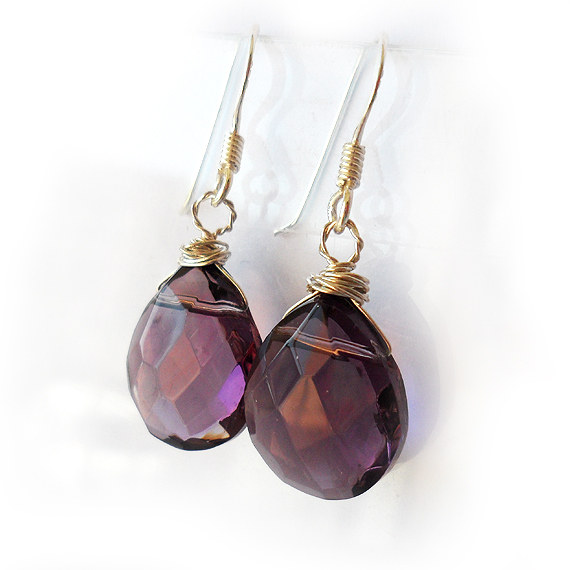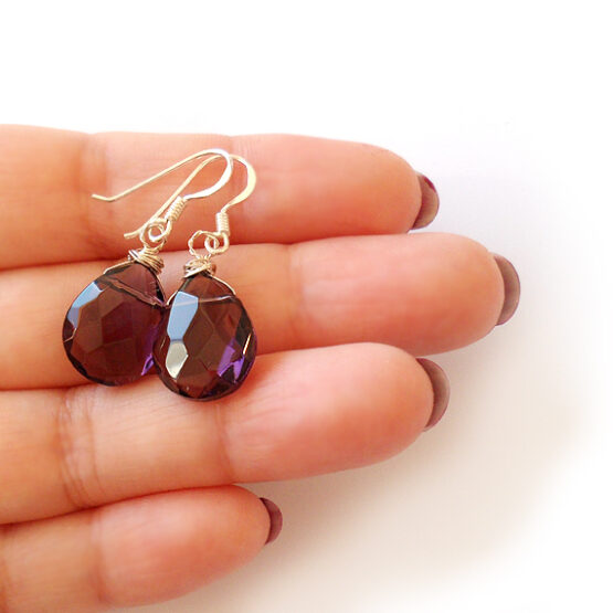 Elegantes pendientes creados con gotas facetadas de cristal en tono morado y montados en pendientes de plata de ley . Ideales para para lucir con tus vestidos favoritos!
