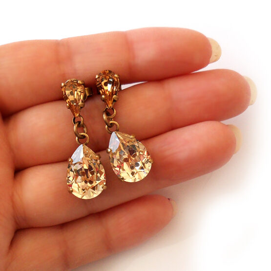 Brilla todos los días con estos preciosos pendientes joya creados con gotas de cristales de Swarovski facetadas en tonos dorados y montados en pendientes de bronce .