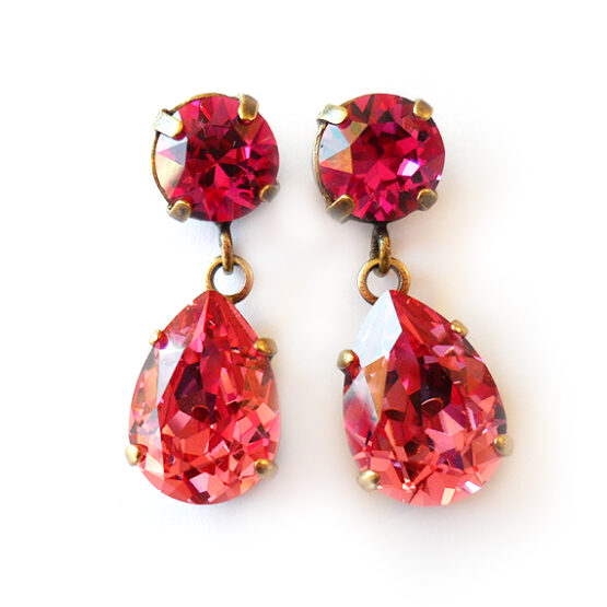 Brilla todos los días con estos preciosos pendientes joya creados con gotas de cristales de Swarovski facetadas en tonos rosa y fucsia y montados en pendientes de bronce .