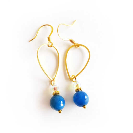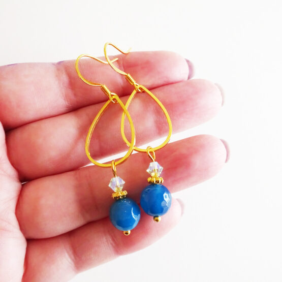 Elegantes pendientes creados con cuentas de piedra de agata en color azul marino y cristales de swarovski! Estos originales pendientes se pueden mover las lagrimas de metal y ponerlas al reves para tener dos modelos de pendientes en uno ;)