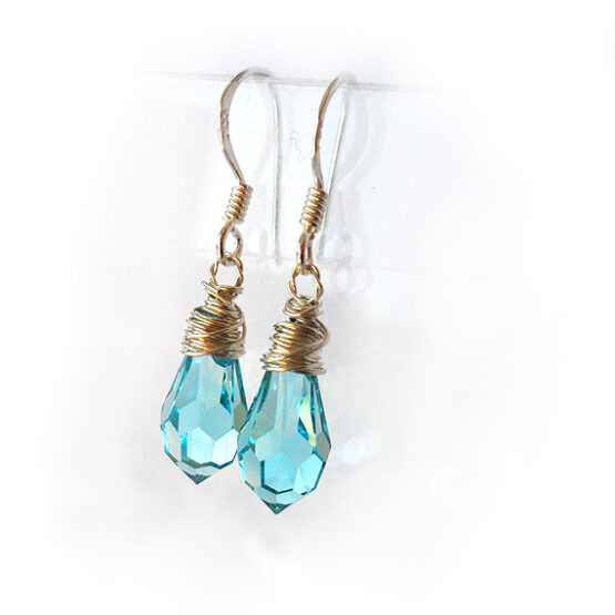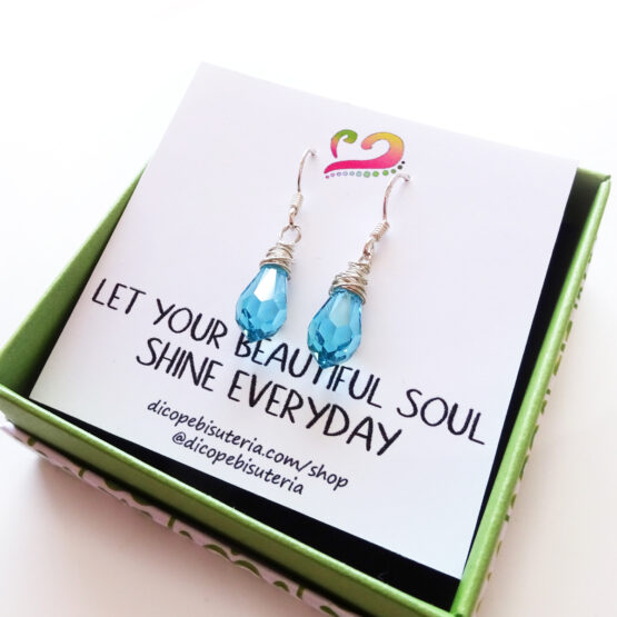 Hermosos y resplandecientes pendientes creados con lágrimas facetadas de cristal de Swarovski en tono azul turquesa y montados en pendientes de plata de ley . Ideales para brillar todos los días!