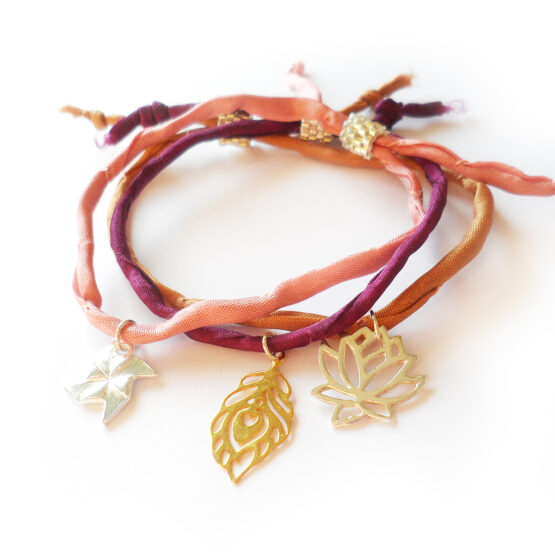 La pulsera Believe esta creada con un colgantito de una preciosa flor de loto de plata de ley que bailara en tu muñeca y te hará recordar Tu palabra! El cordón es de seda y es muy suave y agradable , puedes escoger entre rosa , marrón o morado! Esta pulsera es regulable gracias a un cierre creado con bolitas bañadas en plata de ley!