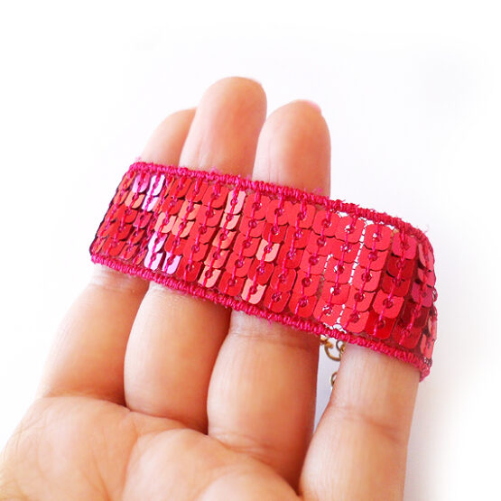 Brilla estas Navidades con esta preciosa pulsera de lentejuelas en rosa ruby! Te encantará lo ligera que es! Ideal para darle un toque elegante a tus looks!