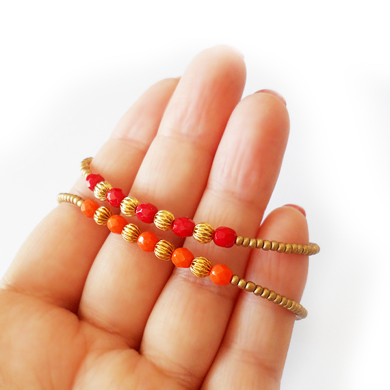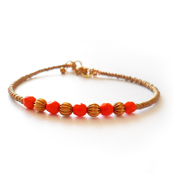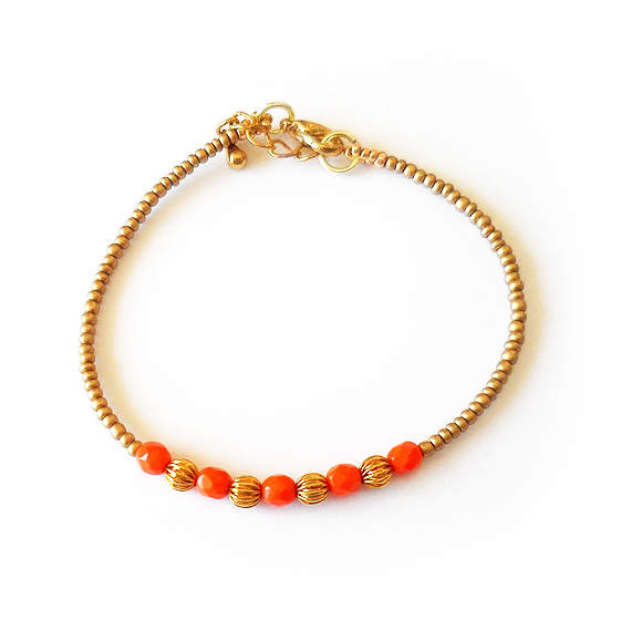 Original pulsera Sheyda que simboliza la pasión y el amor! Esta creada con bolitas facetadas de cristal en tono naranja , abalorios dorados y cuentas vintage en un precioso color dorado mate.Perfecta para mezclar con tus pulseras favoritas y dar un toque bohemio a tu estilo!